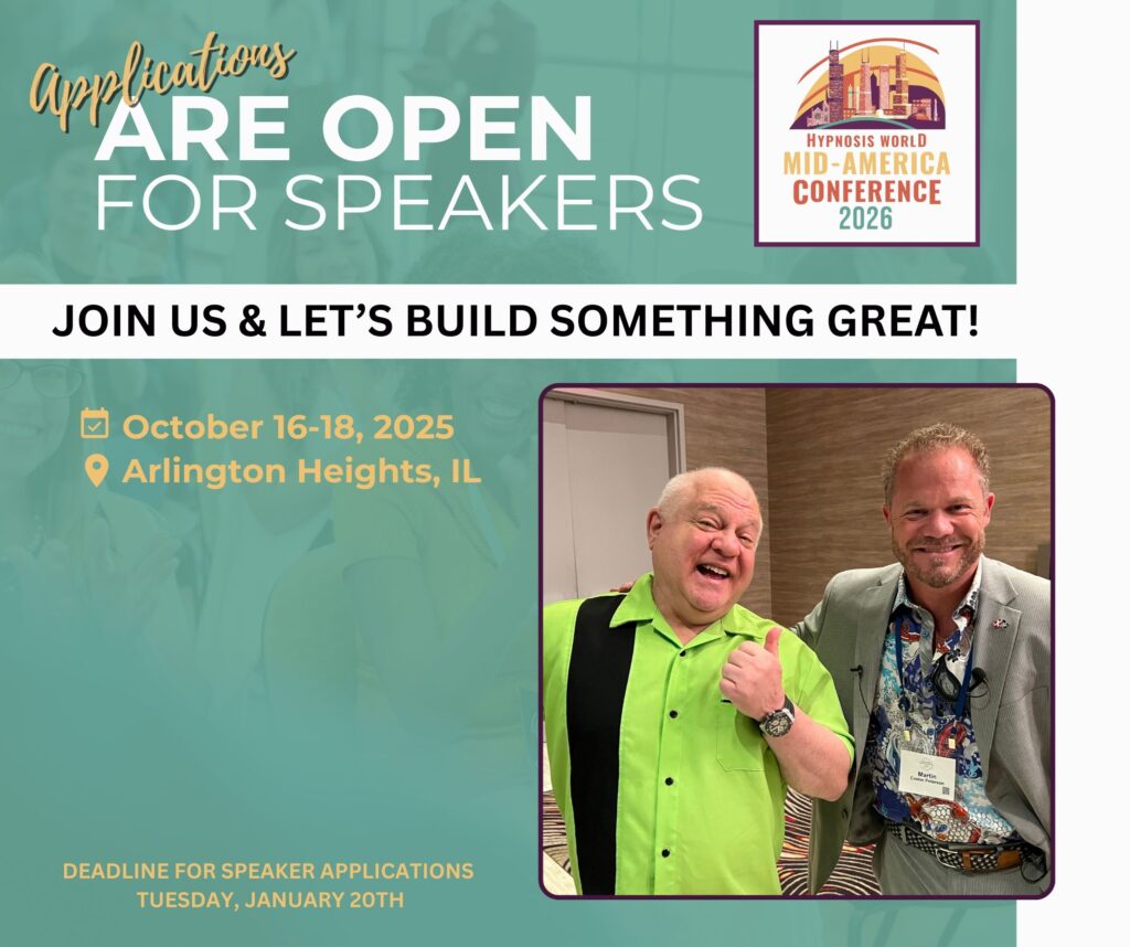 Step into the spotlight at the Mid-America Hypnosis Conference, the longest-running hypnosis event in the United States, and share your expertise with an audience of dedicated hypnotists, NLP practitioners, and wellness professionals. By becoming a presenter, you’ll not only elevate your professional profile but also make a meaningful impact on the hypnosis and wellness community.